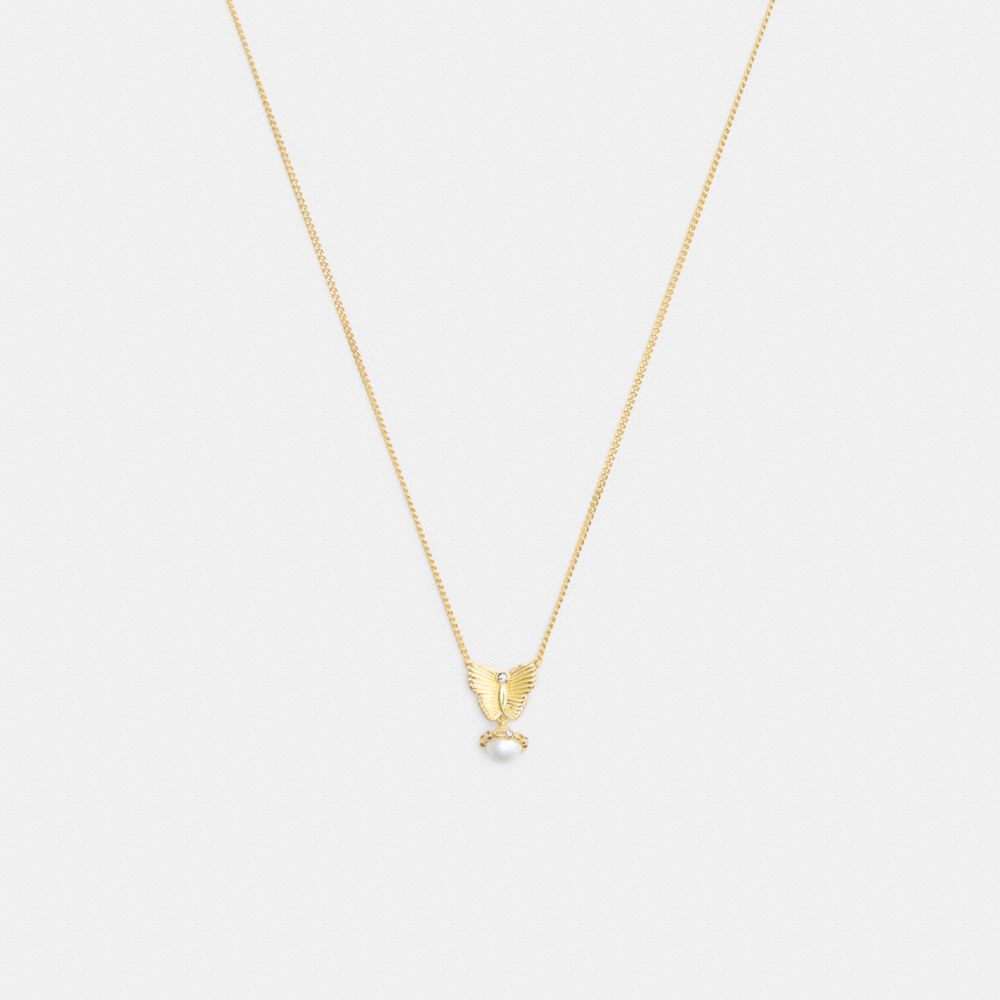 A graceful butterfly pendant adds a whimsical touch to this delicate curb chain necklace. Accented with a sparkling crystal, it’s finished with a pearly stud detailed with our Signature and an adjustable clasp to wear long or short.