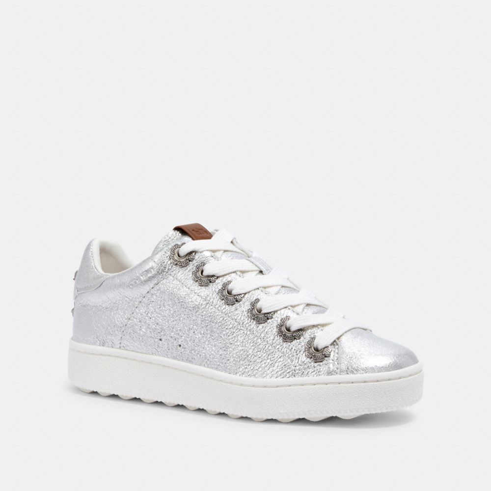 • Inspired by classic tennis trainers, our popular sneaker silhouette is crafted in metallic leather and finished with our signature Tea Rose metal eyelets and removable charms at the back pull. A thick rubber sole keeps these leather kicks street-ready.