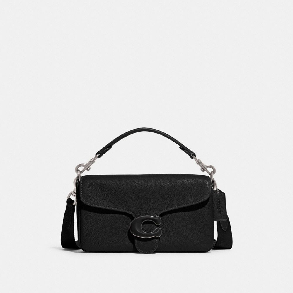 A modern take on an archival 1970s Coach design, our versatile Tabby Multi Crossbody is crafted of soft polished pebble leather and smooth leather. Finished with our Signature hardware, this generously sized style easily holds a phone, wallet, keys, wireless earbuds and more. The multitasking hybrid silhouette can be slipped on the belt to wear at the waist, carried by the top handle or worn crossbody with the detachable strap.